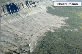 With respect to land degradation, though, sheet erosion has caused the most damage because it can cover a large area. It is most common in agricultural fields, due to improper agricultural practices.